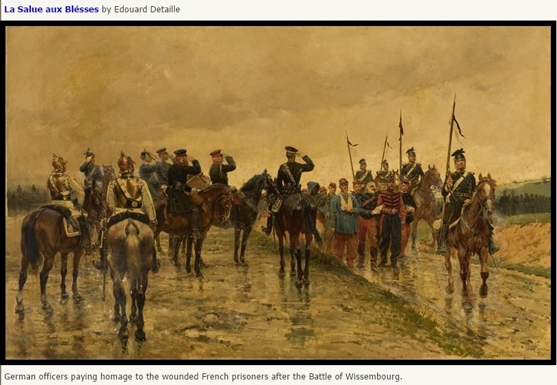 FP War – Ger officers salute fr wounded, after Wissembourg