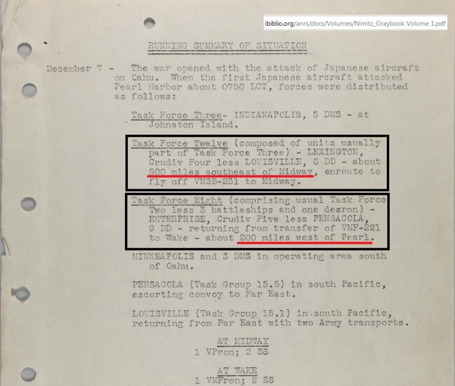WWII – Pearl Harbor, Graybook doc re loc of US carrier battlegroups on 7 Dec 41